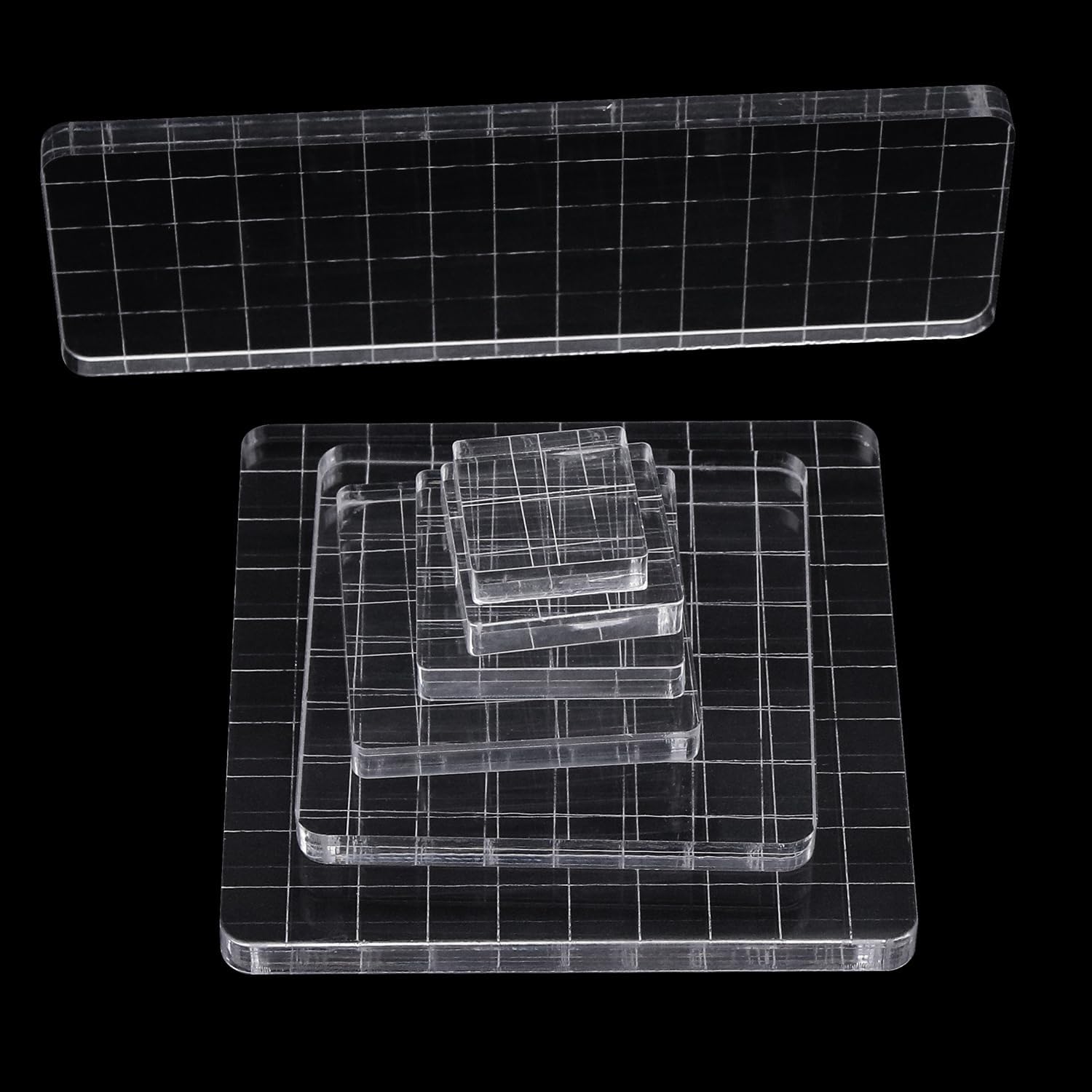 7Pcs Square-Shaped Clear Acrylic Stamp Blocks Set, Acrylic Stamping Blocks Tools Clear Stamps with Grid Lines for Photography Props Scrapbooking Crafts Card Making