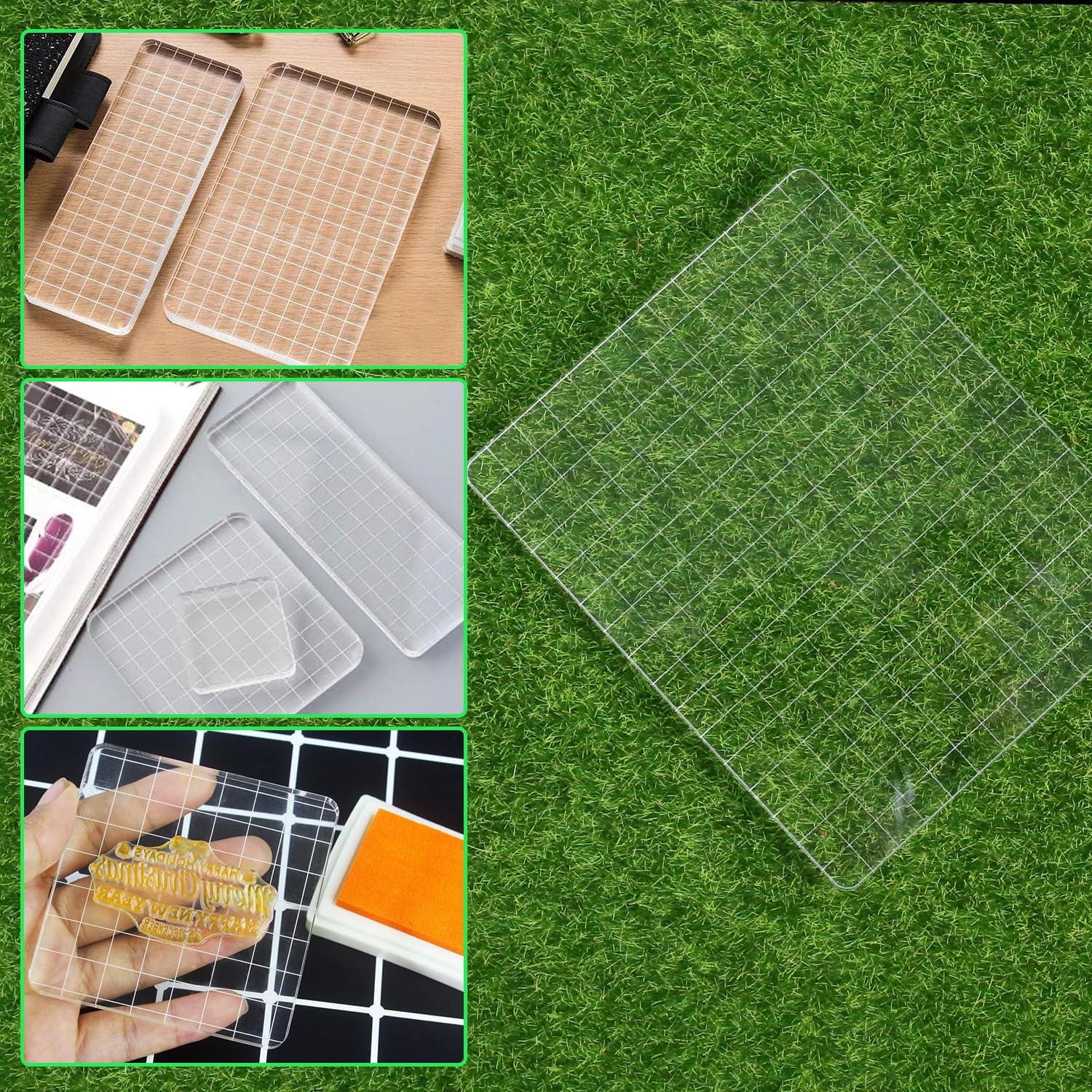- [Unique Design]: Acrylic stamping blocks are clearly designed with 1 x 1 cm grid lines for planning and designing, helping you to accurately position and apply.