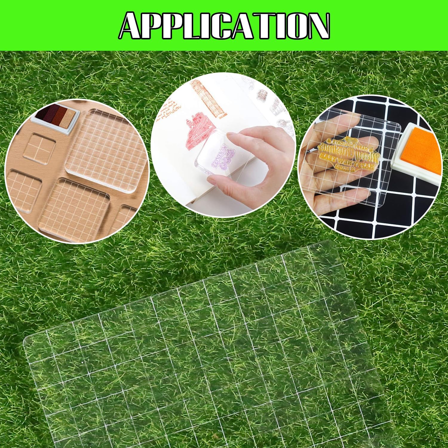 - [Unique Design]: Acrylic stamping blocks are clearly designed with 1 x 1 cm grid lines for planning and designing, helping you to accurately position and apply.