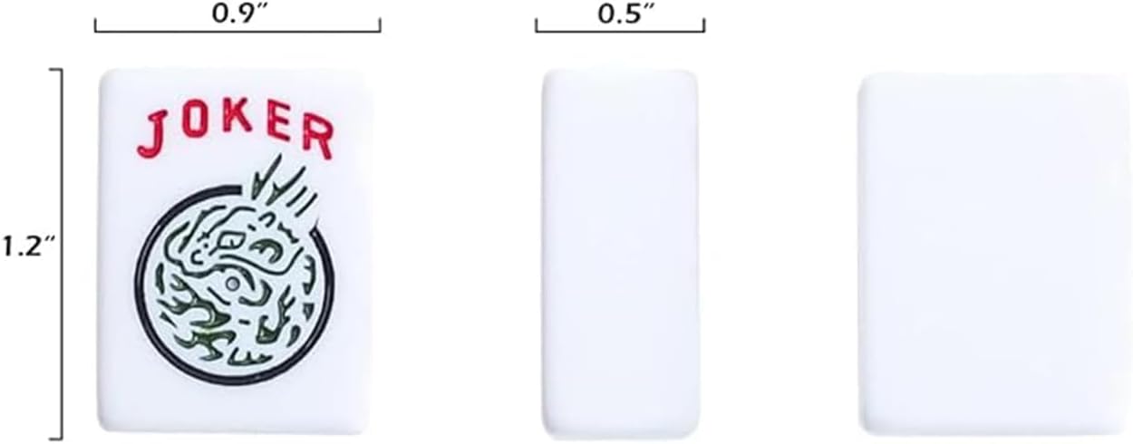 - 166 SCRATCH-RESISTANT TILES: The completed mah jongg set include 166 tiles (36 Dots, 36 Bams, 36 Cracks, 12 Dragons, 16 Winds, 16 Flowers, 10 Jokers and 4 Blank Spares, each tile measures 1.2β Γ 0.9β Γ 0.5β), also we have two nice tile trays with lid to better store the tiles.
