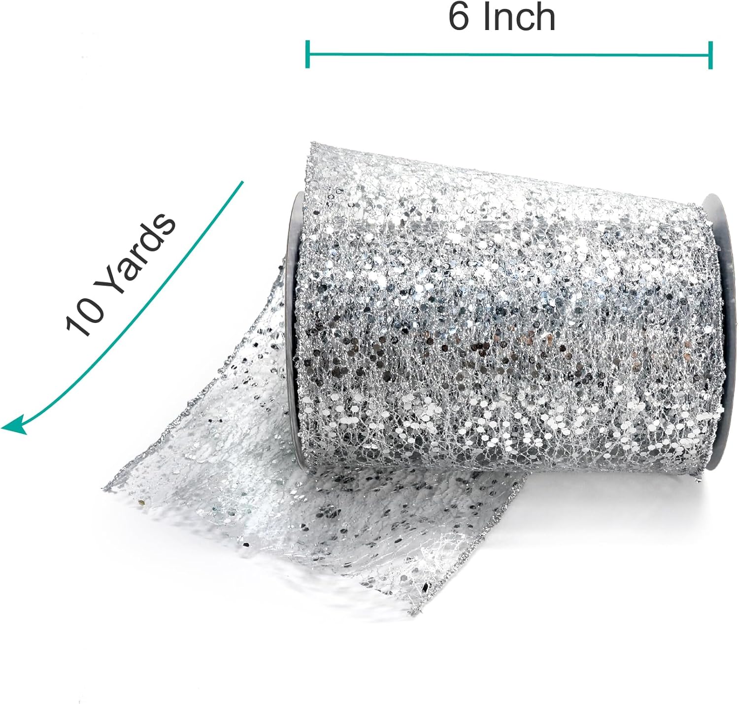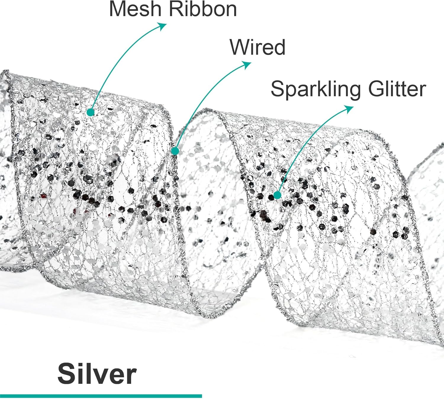 - A MUST-HAVE FOR DECORATION - Don't miss it if you're choosing a Sparkling Glitter Mesh Wired Ribbon 6" Silver for your decoration! Our ribbon works perfectly for decorating and adding finishing touch to your craft projects. Simple and elegant.