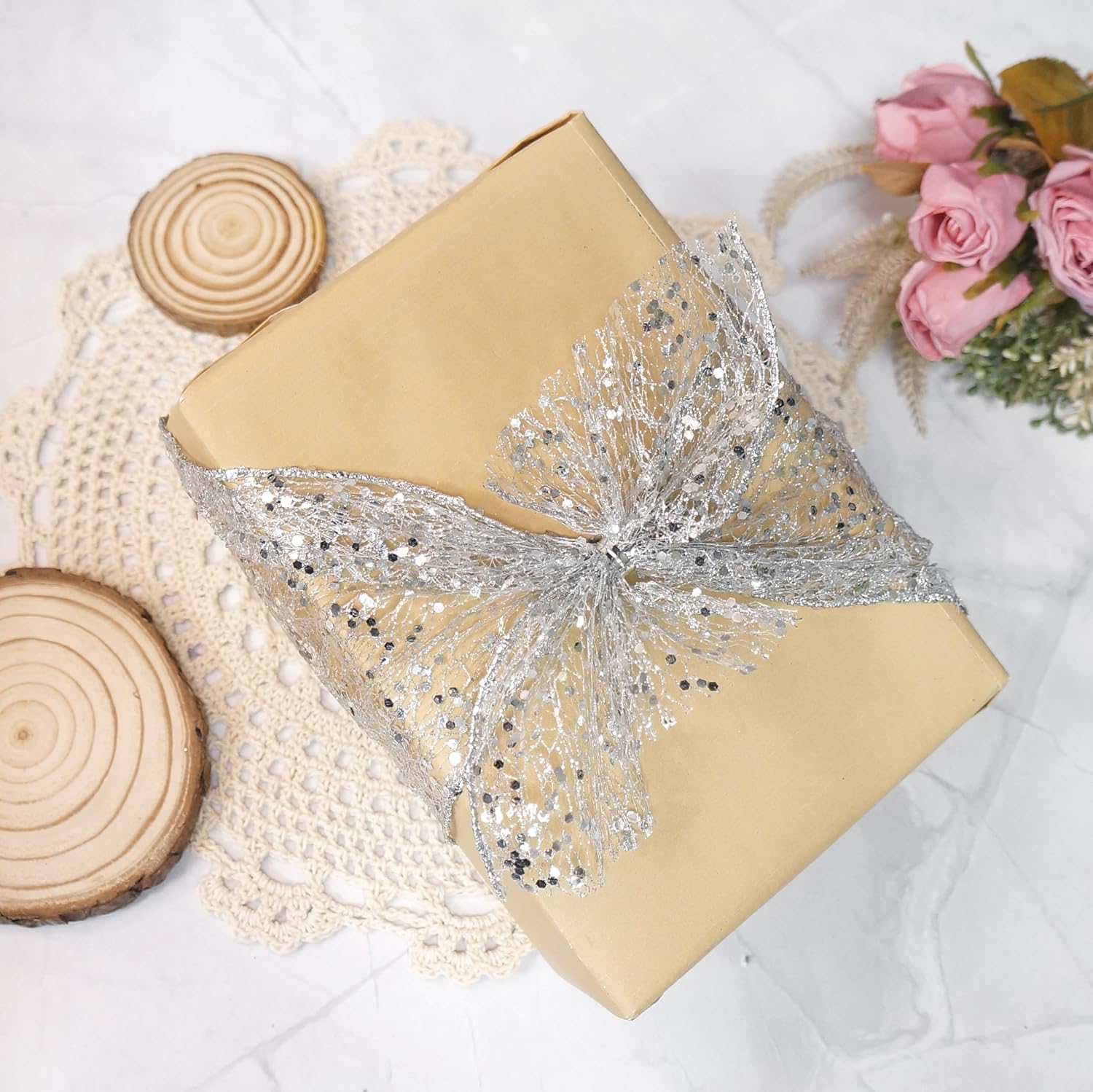 - SIMPLE YET ELEGANT - There is nothing that can accent your Craft better than our Sparkling Glitter Mesh Wired Ribbon 6" for crafts. This ribbon matches any type of gift wrapping paper and the texture not only adds to their premium quality. You'll appreciate the ease and finesse with which these Sparkling Glitter Mesh Wired Ribbon 6" glide through your fingers.
