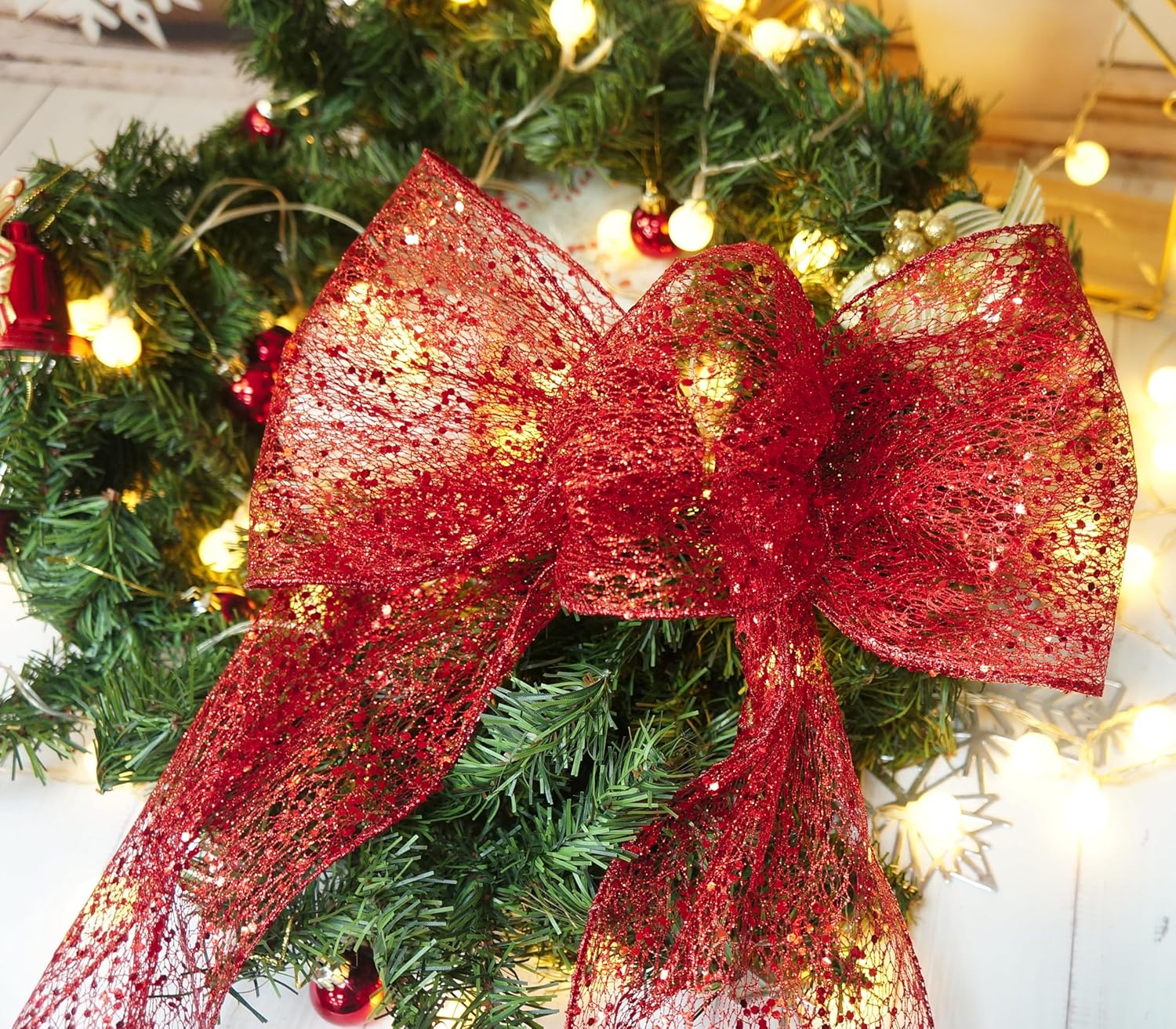 - A MUST-HAVE FOR DECORATION - Don't miss it if you're choosing a Sparkling Glitter Mesh Wired Ribbon 6" Red for your decoration! Our ribbon works perfectly for decorating and adding finishing touch to your craft projects. Simple and elegant.