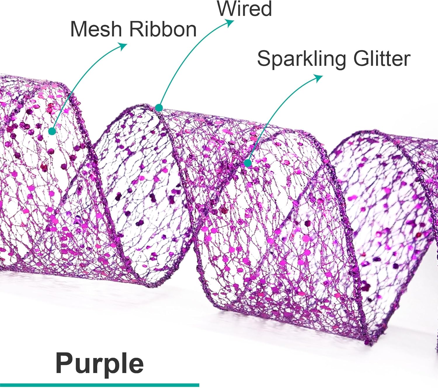 - A MUST-HAVE FOR DECORATION - Don't miss it if you're choosing a Sparkling Glitter Mesh Wired Ribbon 2.5" Purple for your decoration! Our ribbon works perfectly for decorating and adding finishing touch to your craft projects. Simple and elegant.