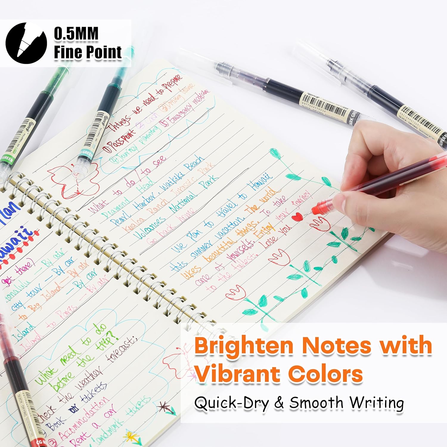 - SUPER QUICK DRYING : with precision tip and smooth writing ink and will not leak ink, the rollerball multicolored ink dries quickly that help you keep work neat, colored pens for journaling, color pens for note taking.