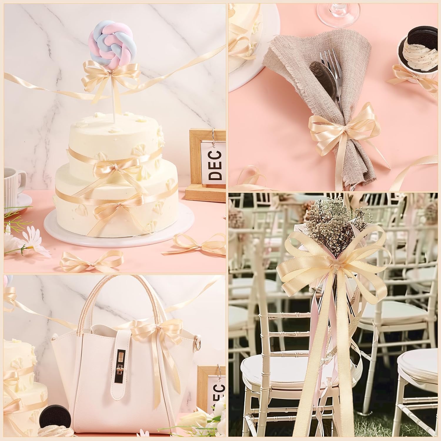 - 【Ribbon Color】The champagne gold color fabric ribbon is bright and lively, elegant and exquisite color, which can add an indispensable atmosphere to festival decoration or gift wrapping at various occasion