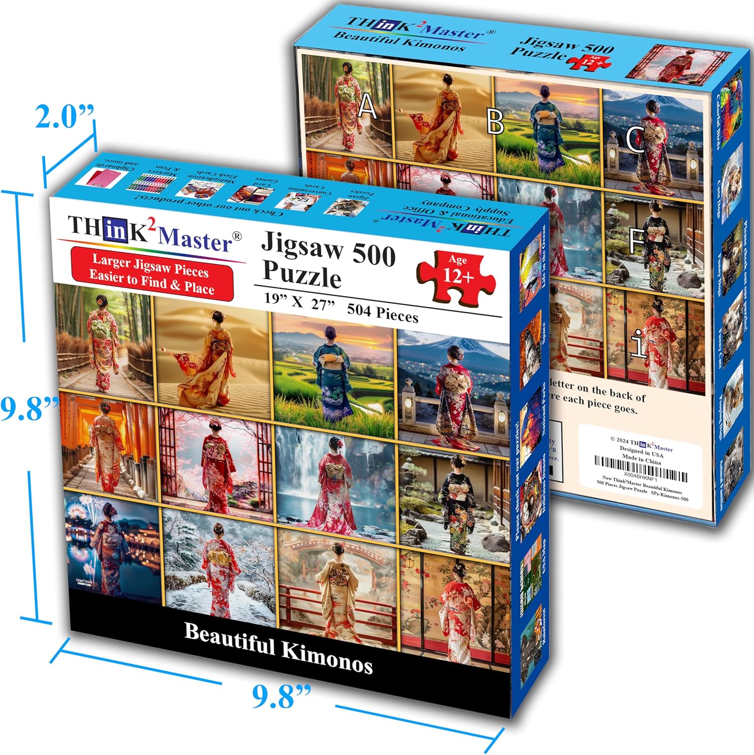 Think2Master Beautiful Kimonos from Japan 500 Pieces Large Format Jigsaw Puzzle for Kids 12+, Teens, Adults & Families. Elegant Colorful Dresses Vibrant Colors, Cultural Art Size: 26.8” X 18.9”