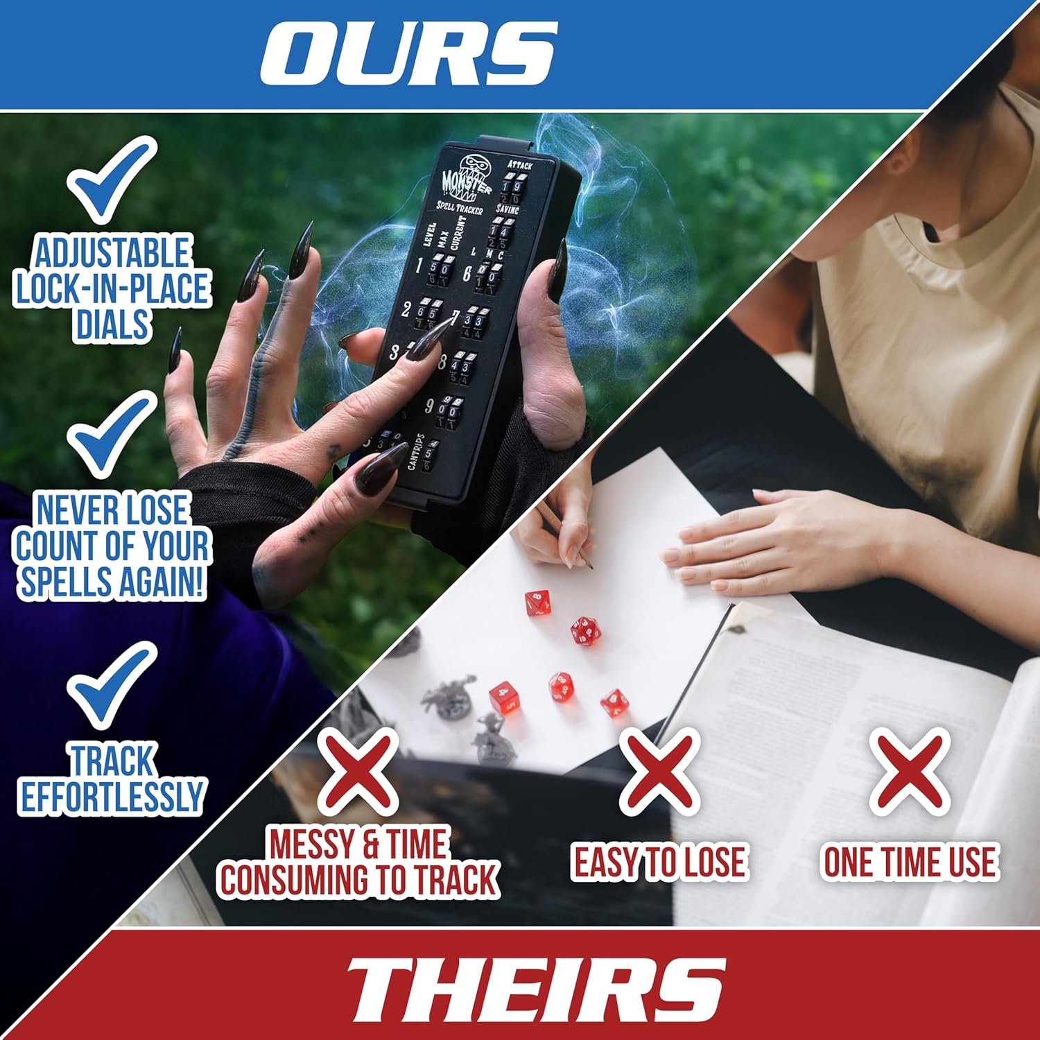 - Sleek and Portable Design: Designed for the adventurer on the go, our compact and lightweight RPG Spell Tracker fits easily into your bag, making it perfect for travel and quick setups at game nights. Keep one for yourself and give them out to your party!