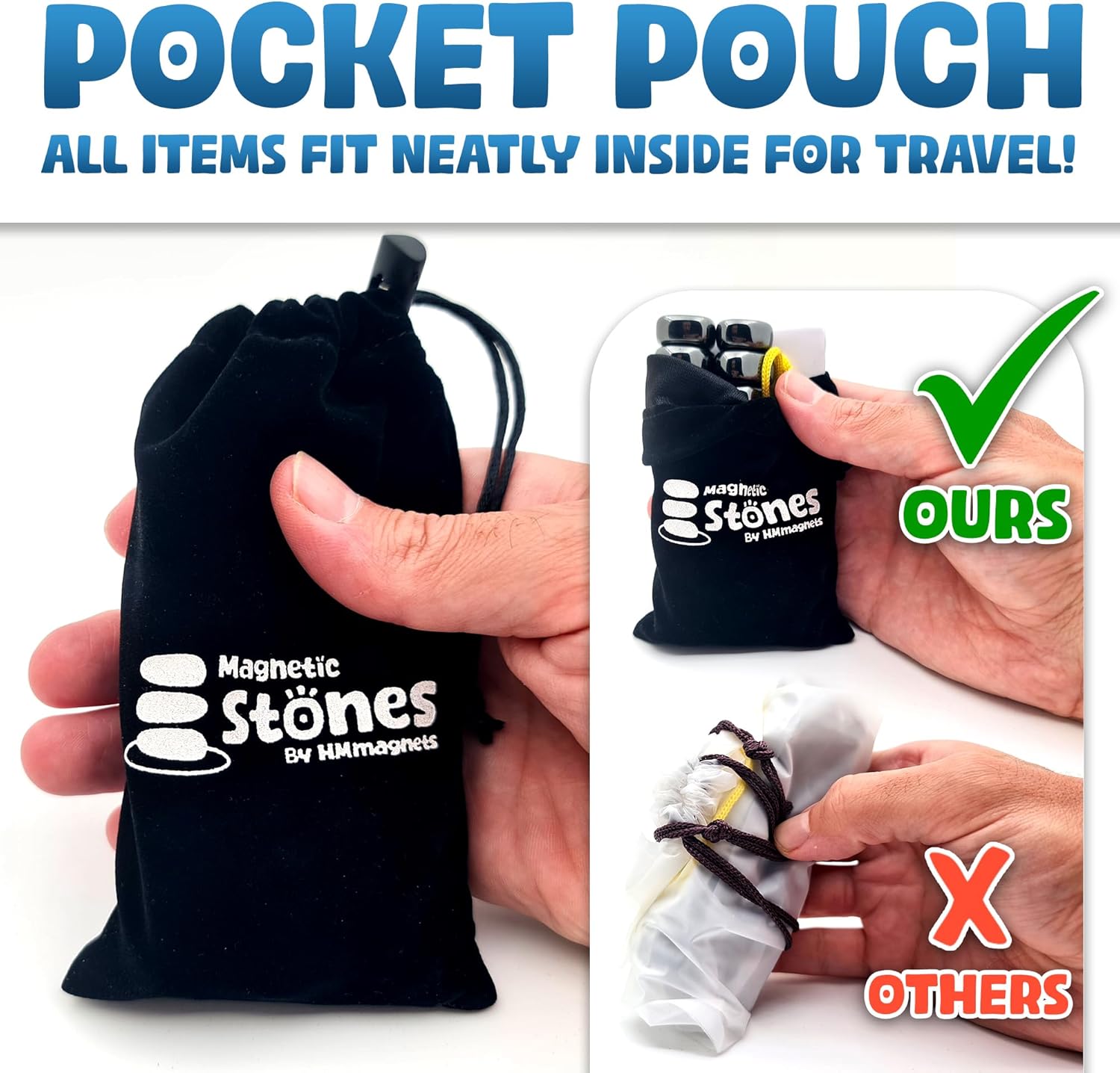 Upgraded (Multi-Level) Magnet Chess Game with String & Stones - Clear & Simple Instructions | Premium Set with 20 Larger & Stronger Stones, Adjustable Rope, 2 Dice & Travel Pouch | for Kids & Adults