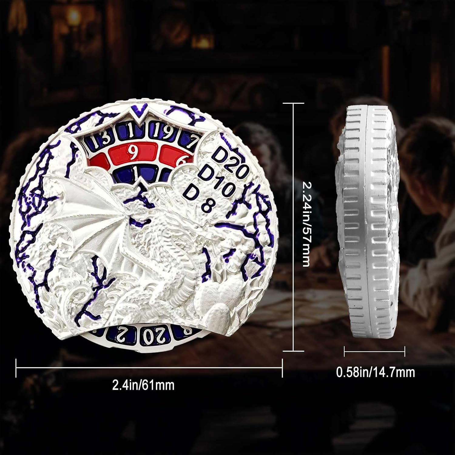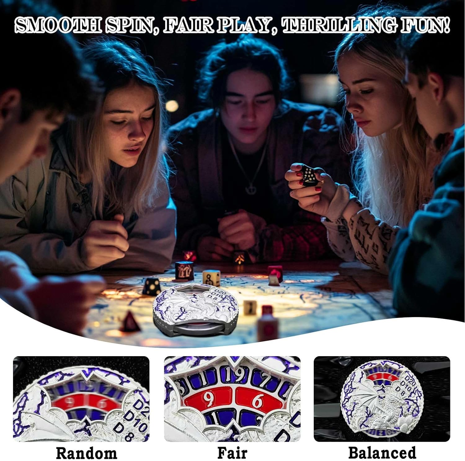 - Durable Material, Clear Display: Our metal dnd dice Crafted from high-quality zinc alloy, exude a substantial heft that's satisfying to the touch and resonates with discerning gamers. The numerals on the roulette are crisply imprinted, ensuring they stay sharp and readable through marathon gaming sessions without fading or wearing away. This robust construction allows for easy reading of results in any setting, thereby streamlining gameplay and enhancing your gaming experience.