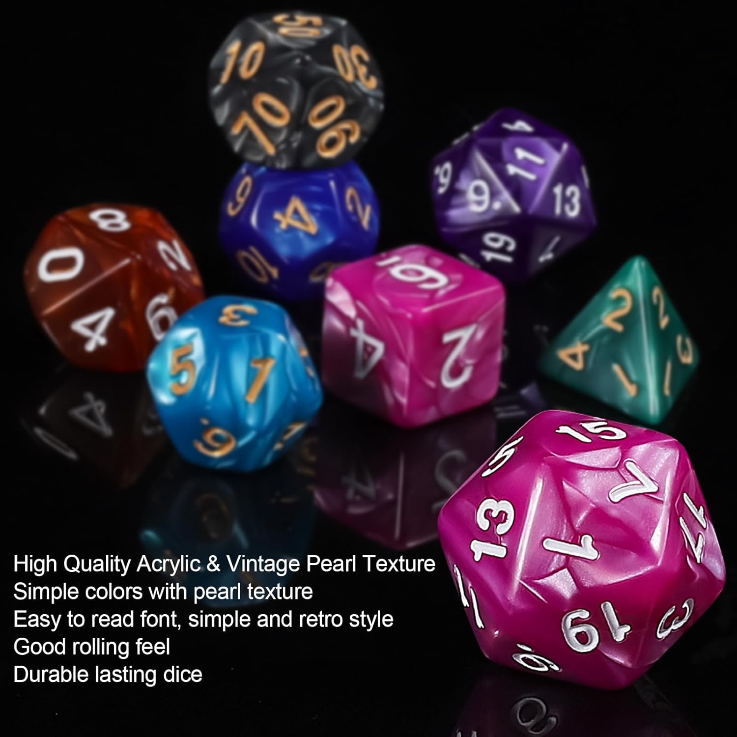 - High quality material: The d and d dice is made of high-quality acrylic, waterproof, anti-oxidation, durable, easy to roll and not easy to damage.