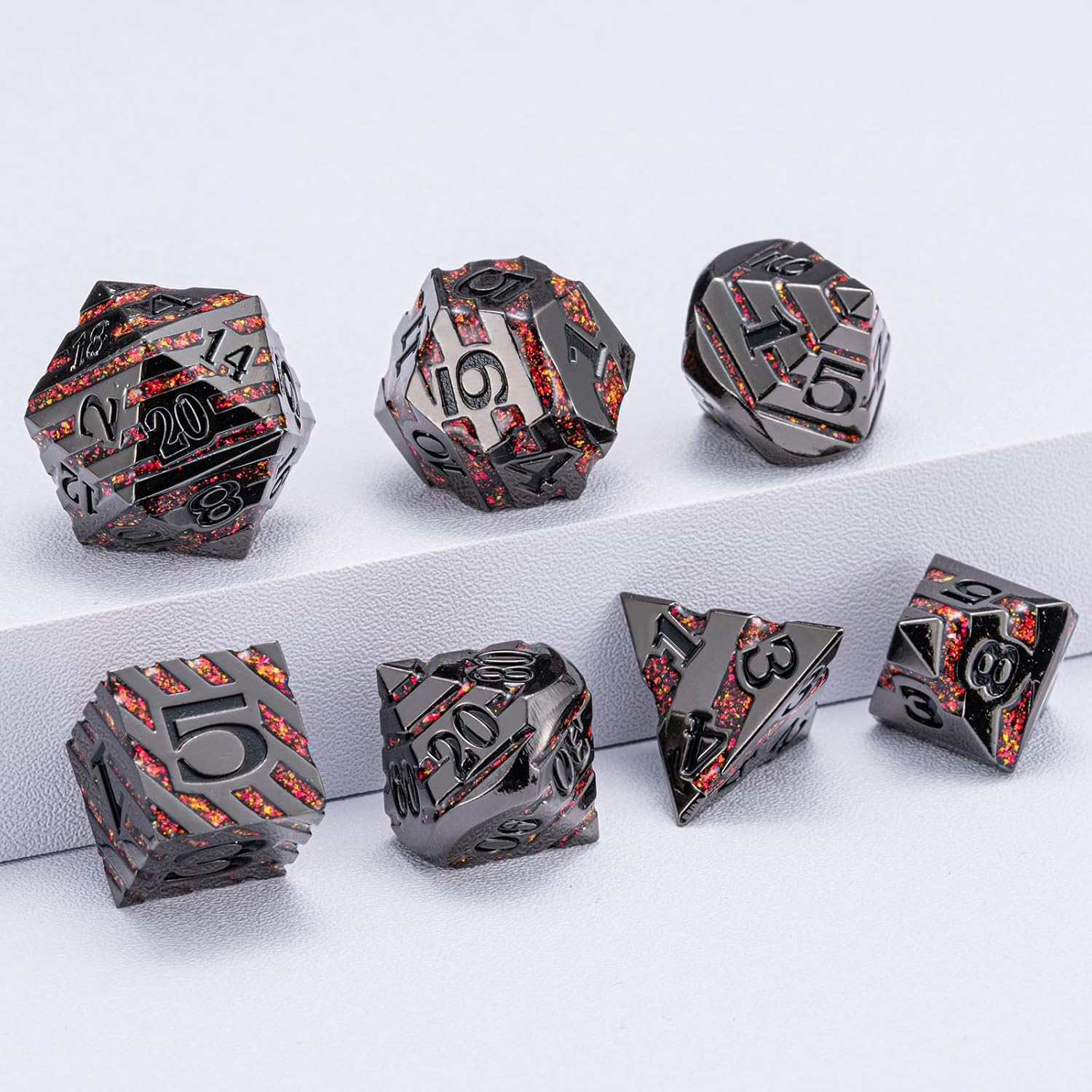 - Excellent Craftsmanship - metal dice Stripes design, the dice is having the cool engraving. All of these elements are carved on the metal dnd dice set with exquisite craftsmanship