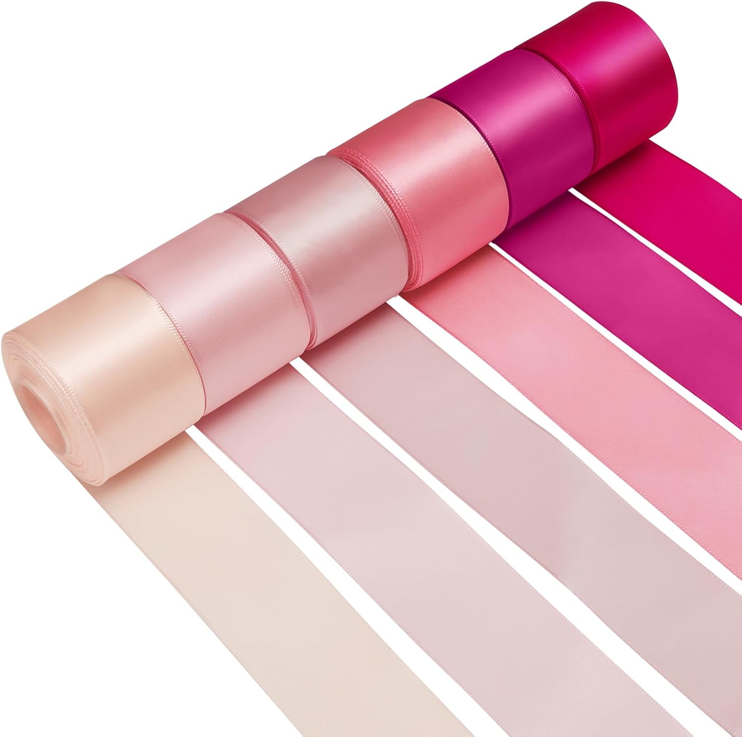 1-1/2 Inch Pink Satin Ribbons for Crafts, 6 Rolls Single-Faced Pink Assorted Ribbons for Gift Wrapping Flower Bouquet Wedding Invitations Bridal Shower Hair Bows Garland Party Decor