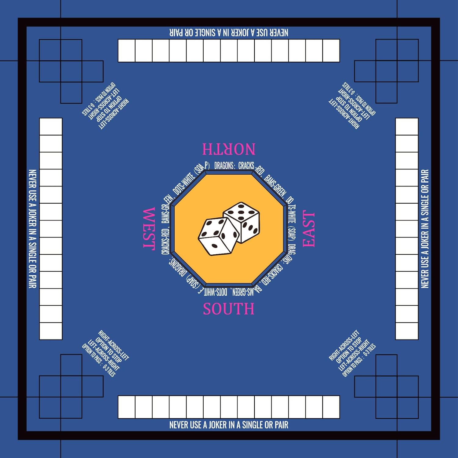 - ✅VERSATILE SIZE & MULTIFUNCTIONAL USE: Measuring 80cmx80cm, the Nine-Marsh mahjong mat with rules fits most home coffee tables and game surfaces. Its spacious layout accommodates tile arrangements, rule references, and player materials, perfect for casual games or competitive matches.