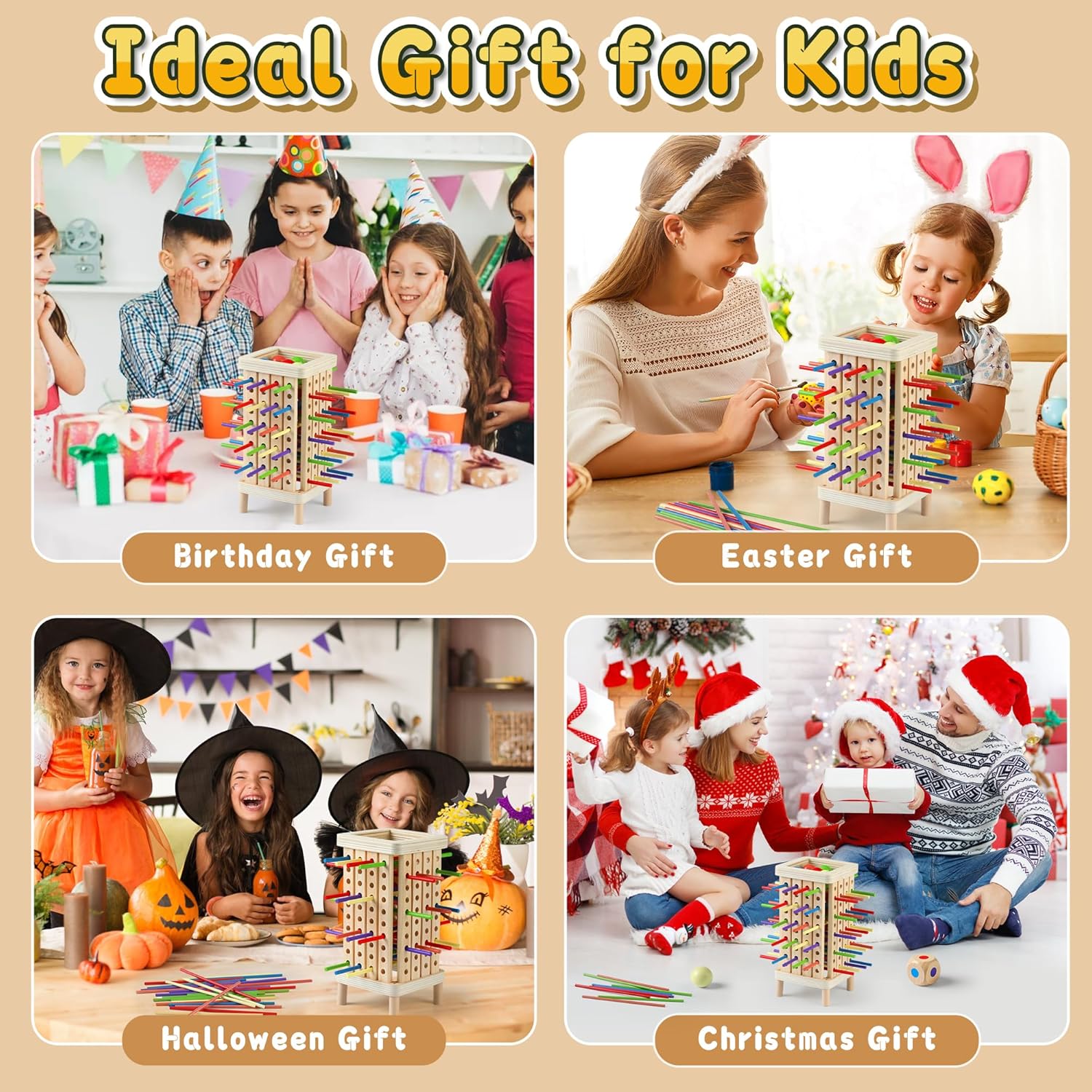 - MONTESSORI EDUCATION CONCEPTS: Our wooden board game incorporates Montessori elements. During the game, by stacking wooden sticks, they can exercise their sense of number, spatial thinking, hand-eye coordination, fine motor skills and logical reasoning skills. Let children learn subtly in fun, in line with the cognitive development law of 3-5 years old children, help to inspire their intelligence.
