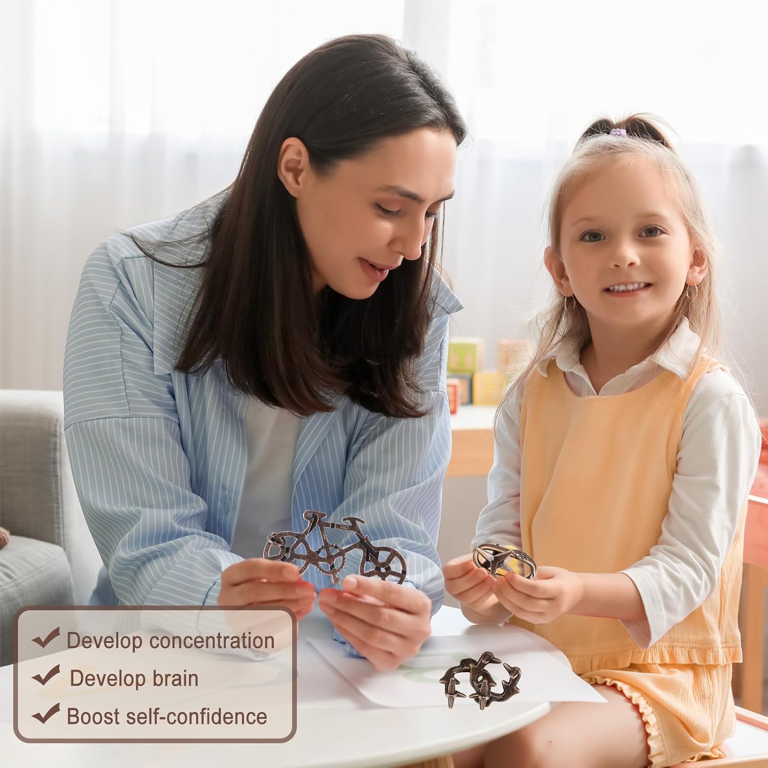 - 【BRAIN TEASER PUZZLES】These cleverly designed puzzles are perfect for all ages, promoting lateral thinking and creativity. They help seniors exercise their brains, improve concentration and problem-solving skills in children and adolescents, and support individuals with ADHD by boosting focus and confidence