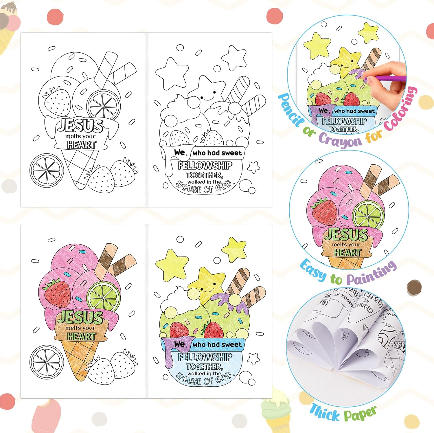 JAPBOR Ice Cream Coloring Books - 24PCS Mini Summer Religious Color Book Bulk for Kids Party Favors, Christian Jesus Small Colour Pages for Sunday School Class Drawing Painting Games Goodie Bag Filler