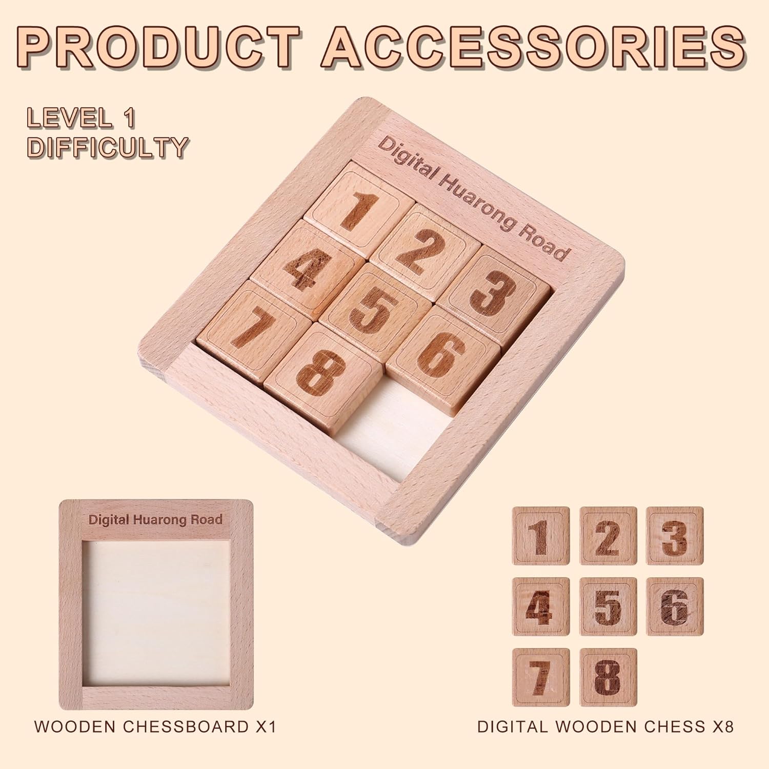 Wooden Number Sliding Puzzle,Brain Teasers Toy Tangram Slide Puzzle Game,Sequential Puzzles Board Game,Educational Toys for Kids and Adults (1-8 Samll Size)
