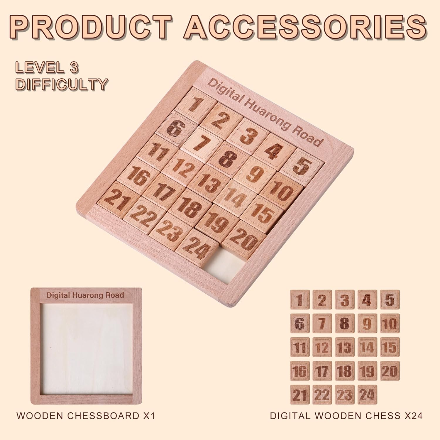- ✅【HOW TO PLAY?】Shuffle the order, randomly install it on the chessboard, move the squares to rearrange the numbers 1-24. Attention! You need to play on a horizontal tabletop, as the product is made of wood and does not have magnetism, it is easy to fall off and affect your experience!ers.