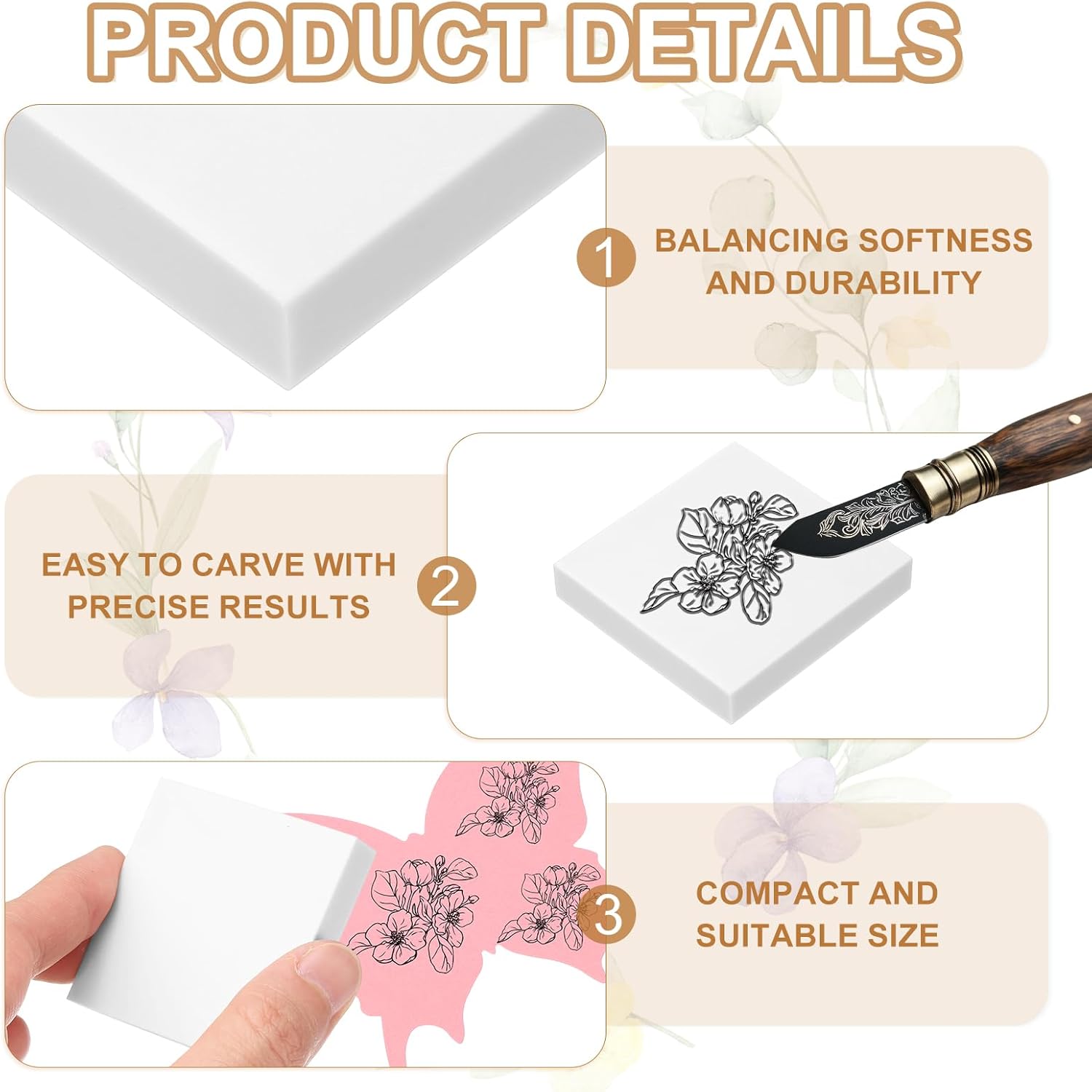 - Advantage: Rubber stamp block is soft yet durable, balancing softness and durability, easy to carve with precise results, suitable for complex designs and clear stamps. The material is flexible and resistant to cracks, ensuring the stamp is durable and reusable.