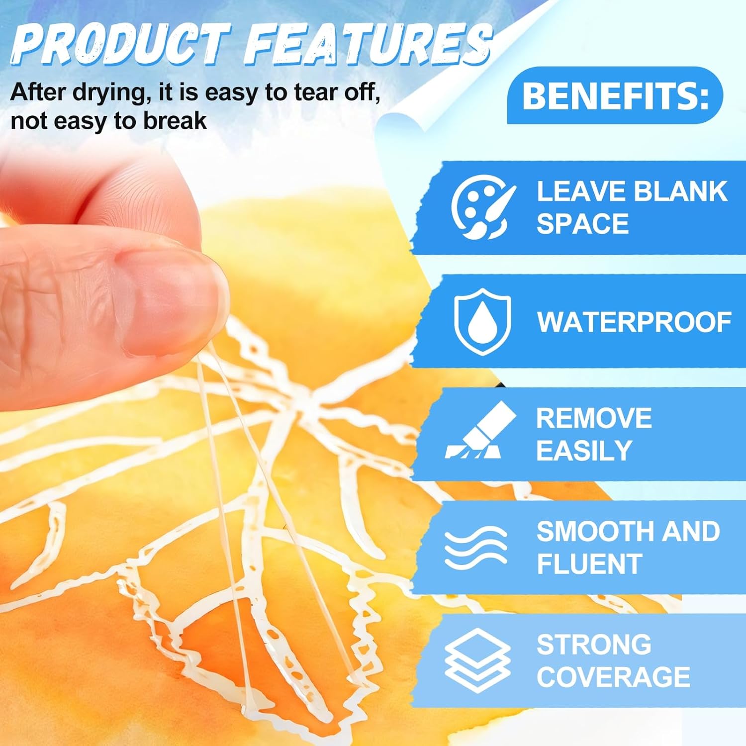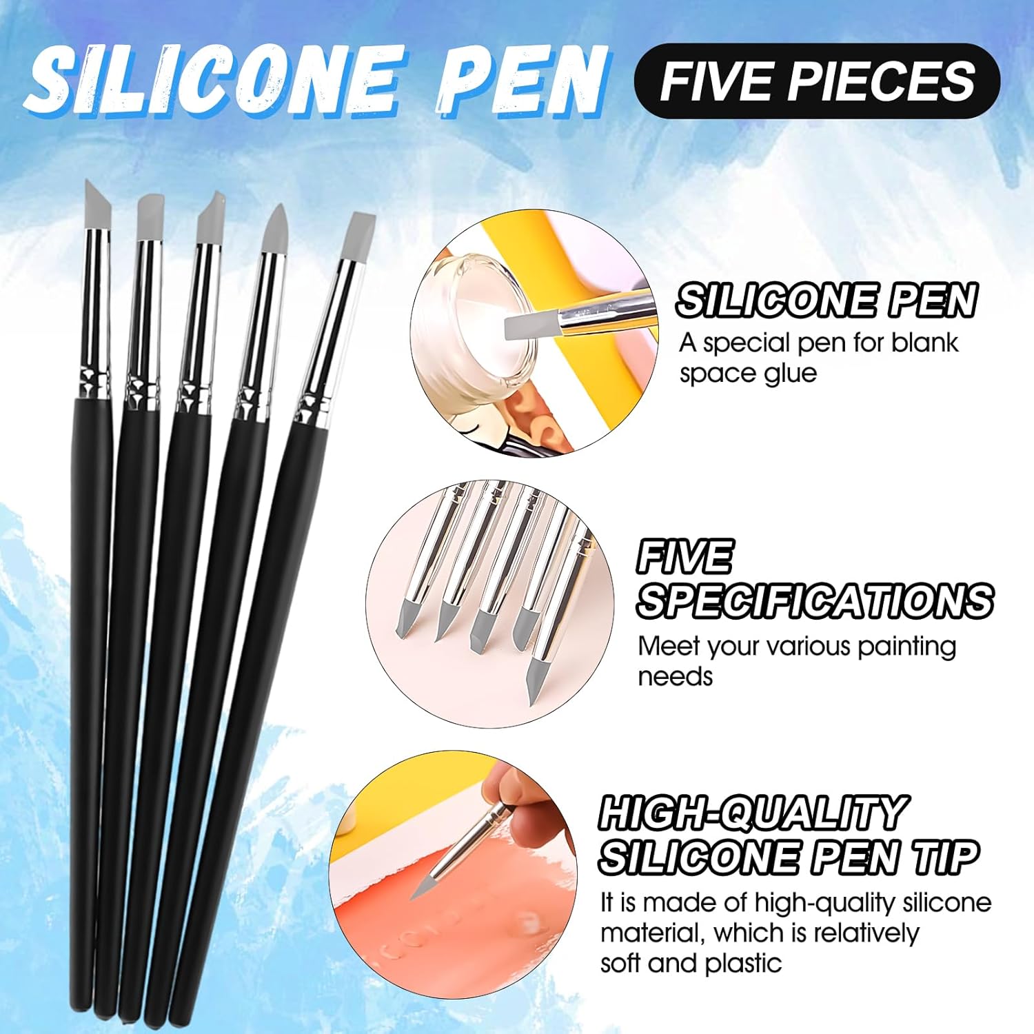 - Art Masking Fluid Kit: Include 30ml art masking fluid,5 x silicone pen,1x cleaning brush.