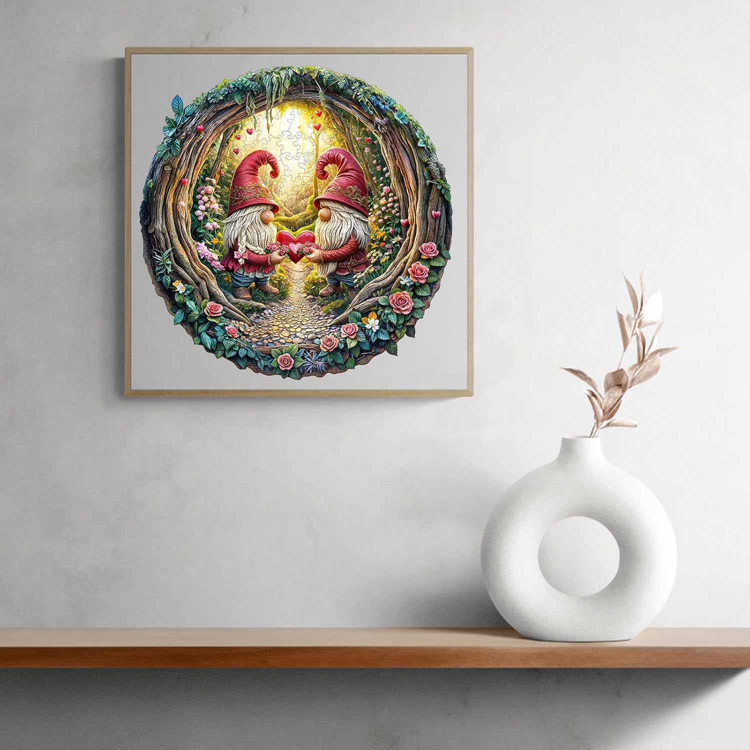 KAAYEE Wooden Puzzles for Adults, 3D Visual Effect Gnome Couple Wooden Jigsaw Puzzle Unique Shape Wood Puzzle Adult, 3D Effect Flat Puzzle Birthday Family Games (M-11.4 * 11.3in-200pcs)