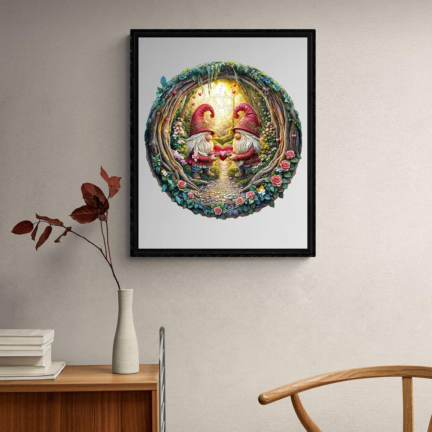 KAAYEE Wooden Puzzles for Adults, 3D Visual Effect Gnome Couple Wooden Jigsaw Puzzle Unique Shape Wood Puzzle Adult, 3D Effect Flat Puzzle Birthday Family Games (L-13.4 * 13.3in-300pcs)