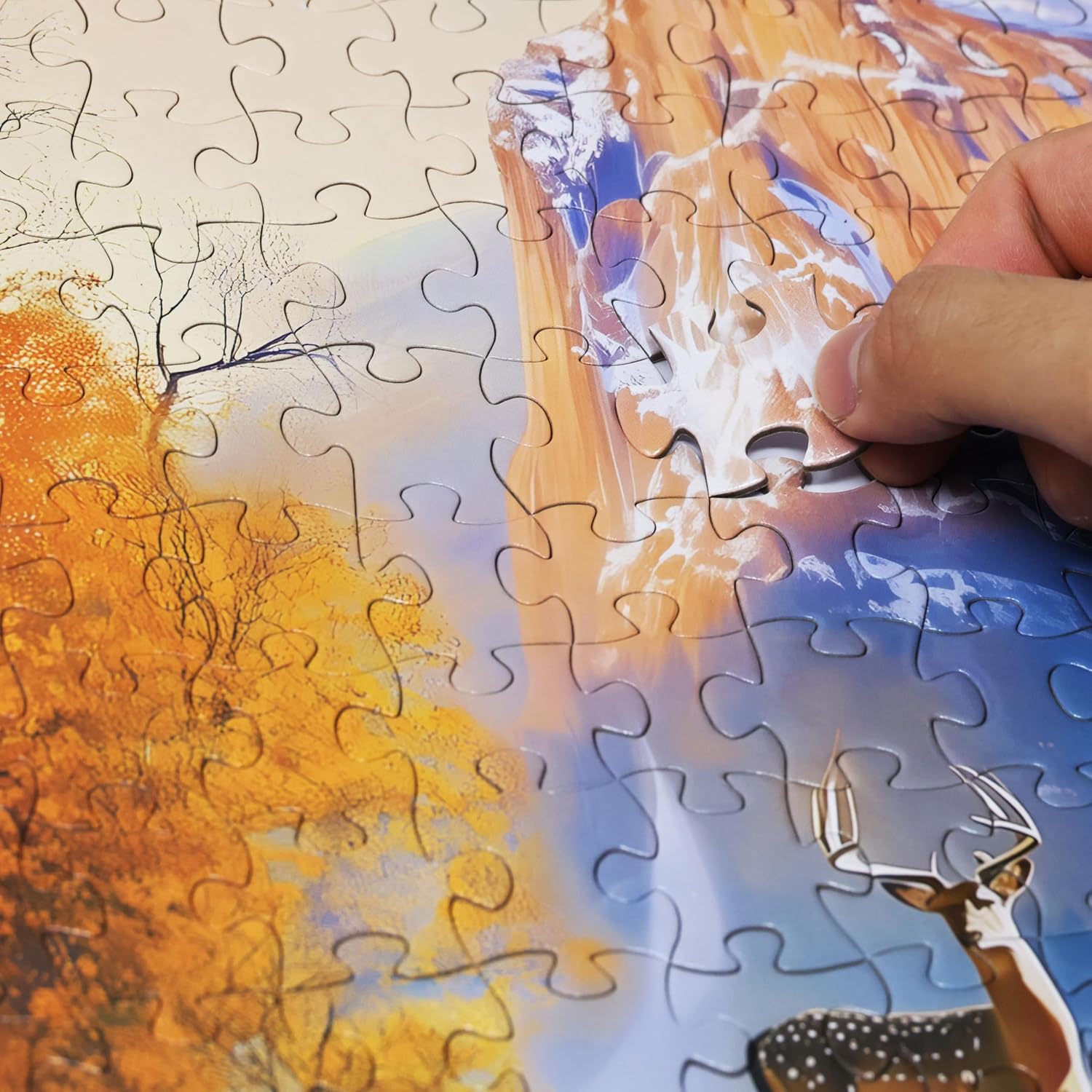 - 【Fun Activity】 - Kids and Families can complete the puzzle together. Charming Wildlife Details: The scene is brought to life with meticulously detailed wildlife. Discover two majestic stags standing proudly, a gentle doe pausing for a drink, and a family of Canada geese swimming peacefully in the calm waters of the stream. Once completed, this puzzle becomes a beautiful home wall decor, adding a touch of color and artistic flair to any room. It's an ideal way to entertain, relax, and create a masterpiece to display.
