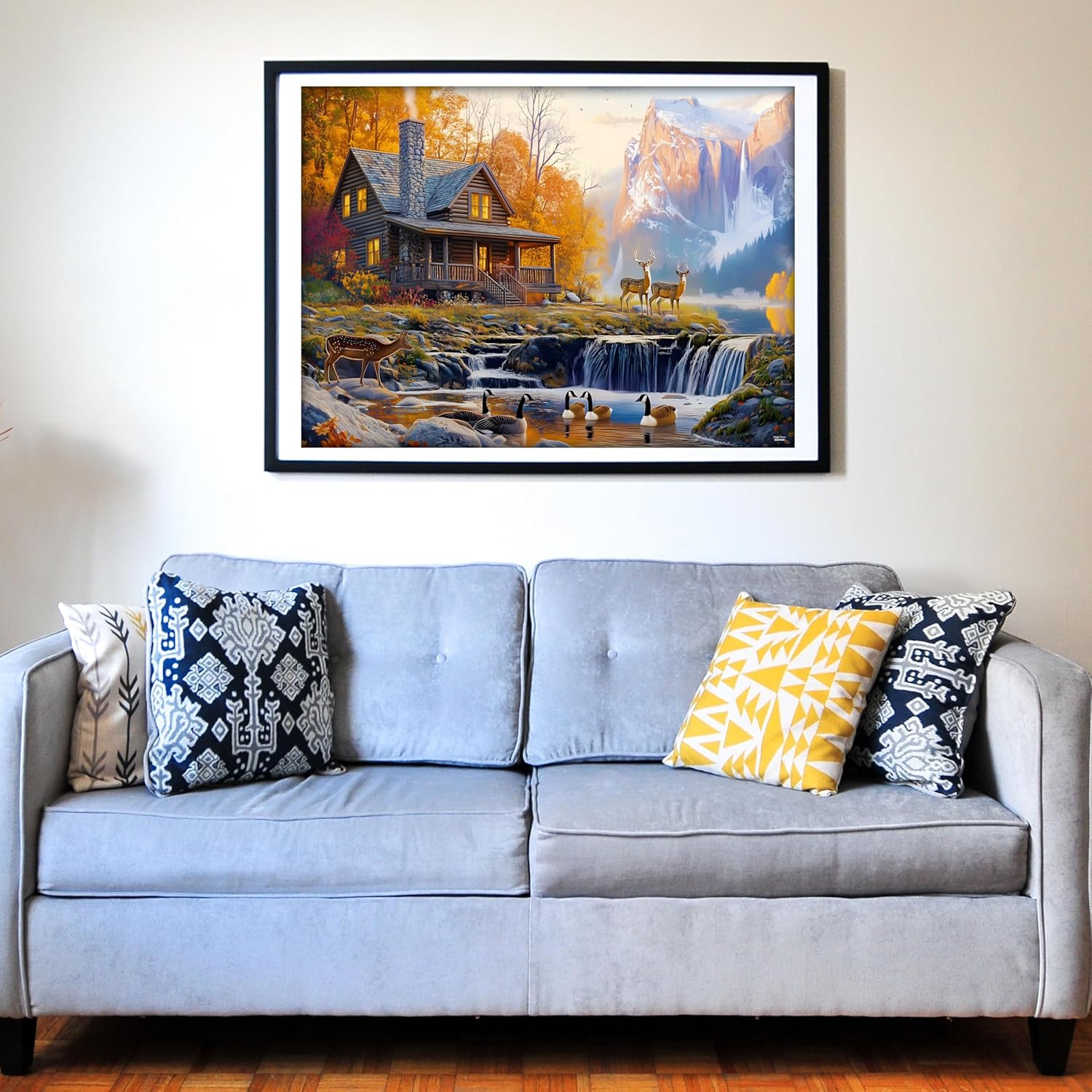 - 【Breathtaking Scenery】 - Escape to a tranquil autumn paradise with our Mountain Cabin jigsaw puzzle reminiscent of Yosemite Valley. This beautifully illustrated puzzle captures a breathtaking scene of rustic serenity, perfect for anyone looking to unwind and enjoy a rewarding challenge. Piece together a stunning, vibrant landscape featuring a cozy, light-filled log cabin nestled in a forest of brilliant autumn colors. A majestic, snow-dusted mountain and a powerful cascading waterfall create a dramatic and beautiful backdrop.