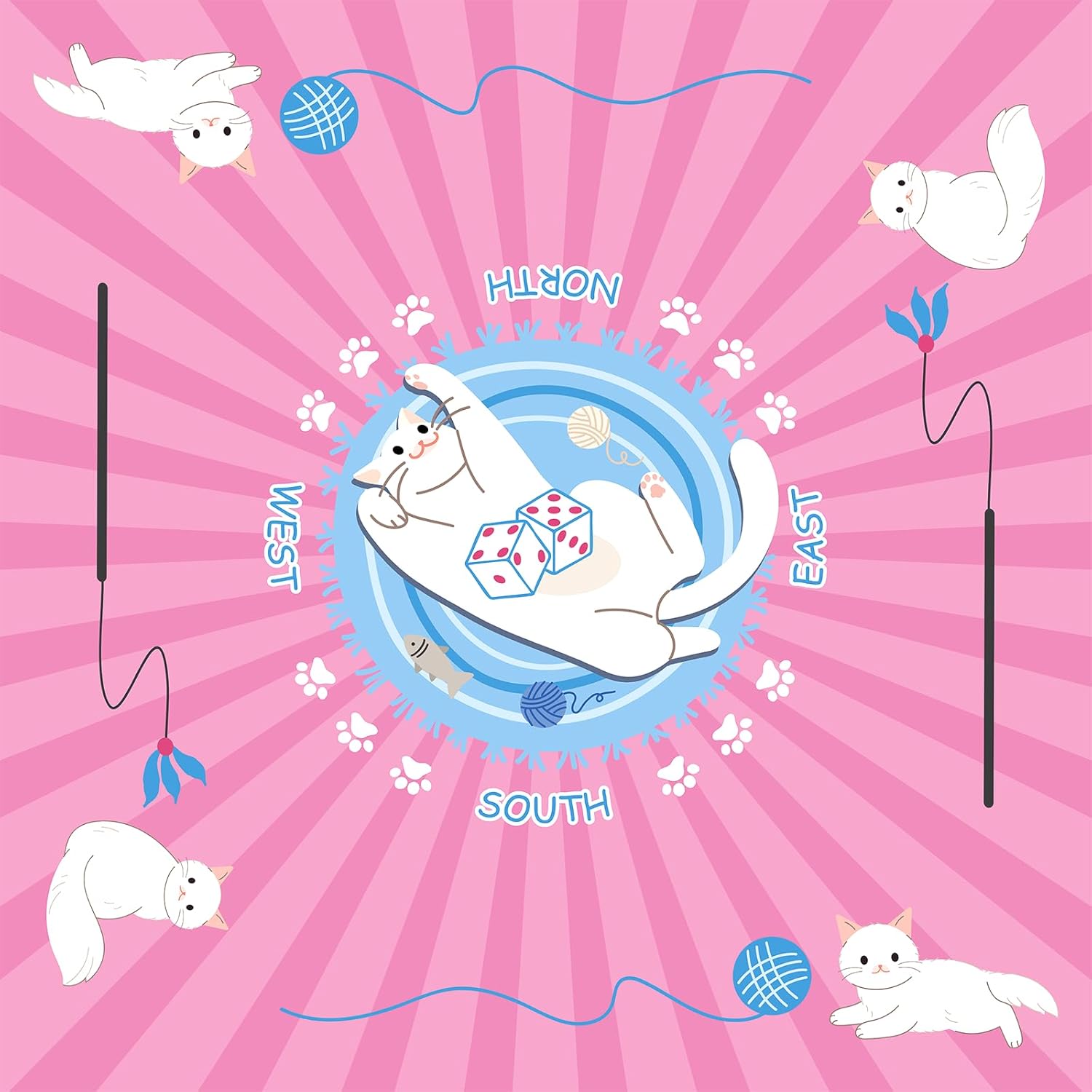 - Purr-fect Mahjong Table Mat Design: Central dice area showcases a cute cat hugging dice, adding whimsy to your game night. Sized at 31.5"x31.5" (80cmx80cm) for spacious play.