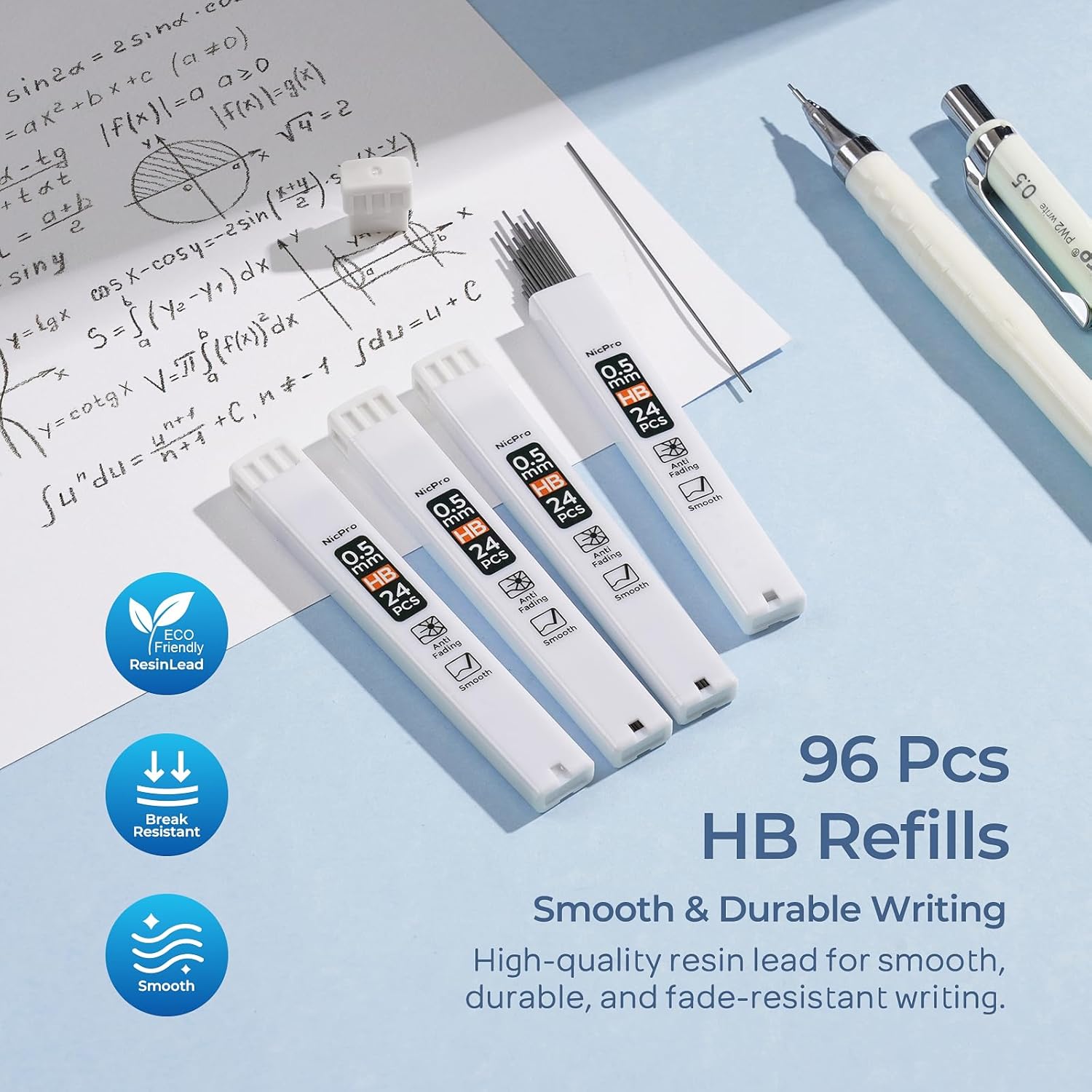 - All-in-One Stationery Kit:Comes with 4 pastel mechanical pencils (0.5mm), 4 tubes of HB lead refills (96 leads total), 1 large rotary eraser, 1 4B eraser, 12 cap eraser refills, and 1 portable case to keep everything organized—your go-to back to school supplies.