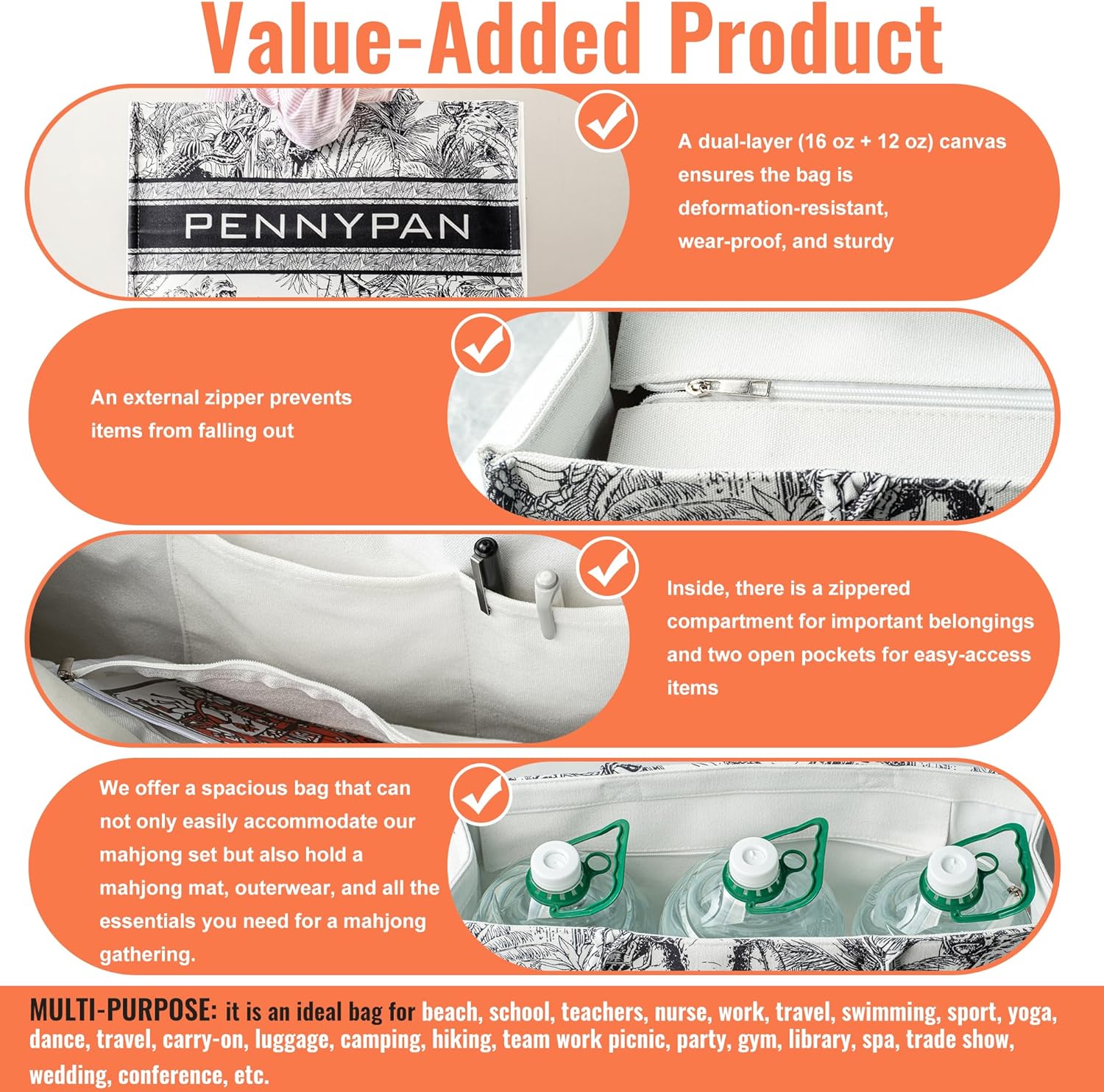 - Carrying Case: Our large-capacity packaging bags are made of eco-friendly canvas. These sturdy and abrasion-resistant canvas bags offer excellent load-bearing capacity and maintain their shape over time. They easily hold complete mahjong tile sets. You can also use this spacious canvas bag for camping, travel, and shopping, making it incredibly versatile! The bag features a secure outer zipper and an inner pocket. Additionally, there are two open pockets for holding small items or essentials, providing easy access.