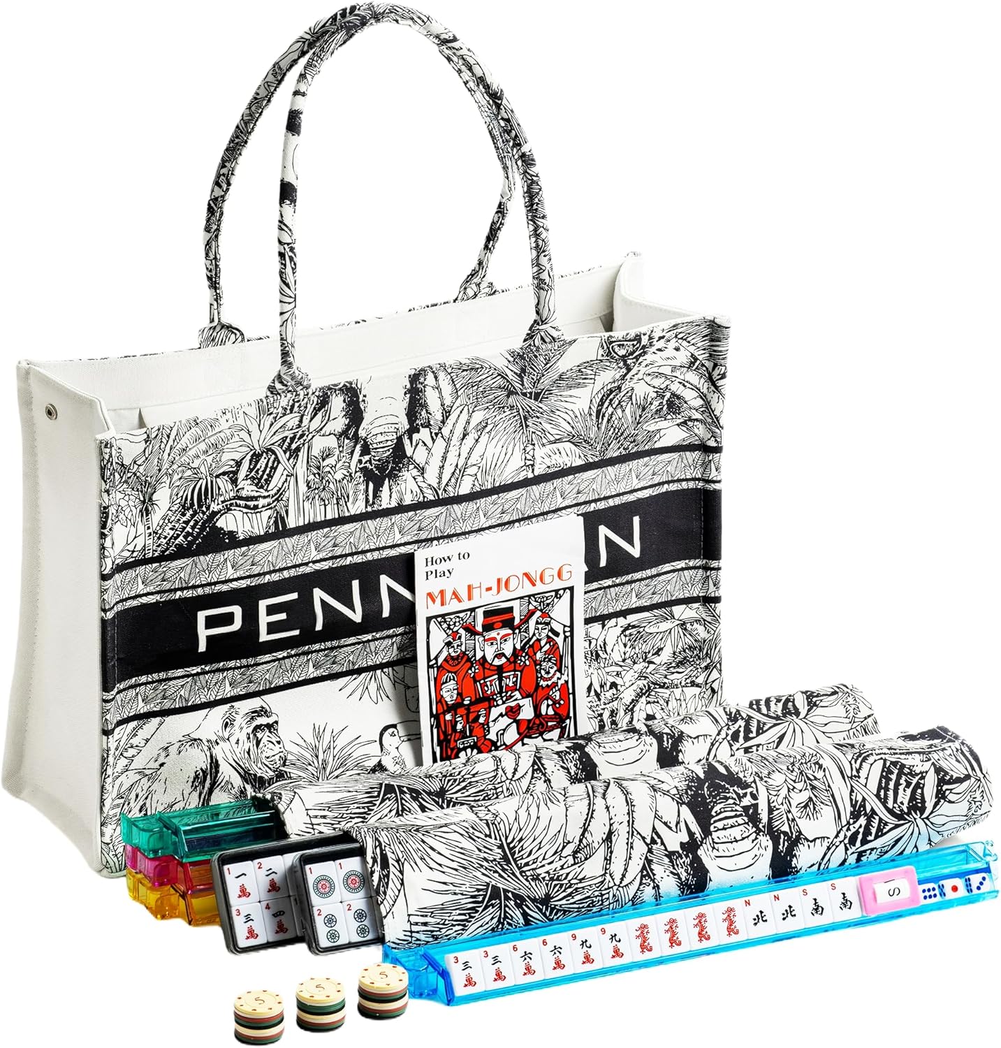 American Mahjong Tile Set,166 Premium White Tiles, 4 All-in-One Color Racks With Pushers, Mahjong Game Set With Large Capacity,Durable,Eco-Friendly Canvas Bag (Mah jongg Set,Mahjong Set Complete)