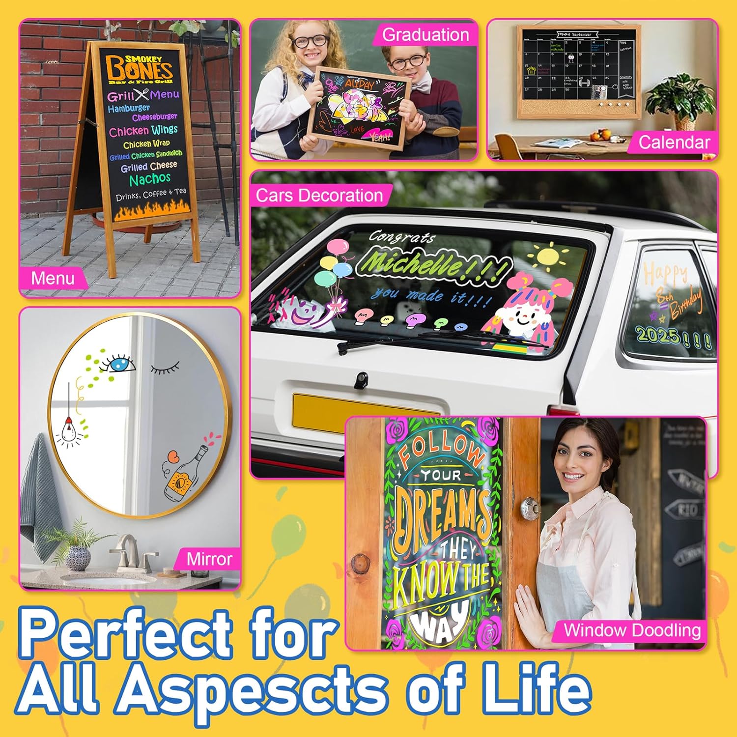 - 18 Vibrant Neon Colors:Car window markers use upgraded 3rd-gen ink for brighter,more vibrant fluorescent colors.Available in a variety of shades bright,metallic and vintage.All of them are rich in pigments,long-lasting and fade resistant.