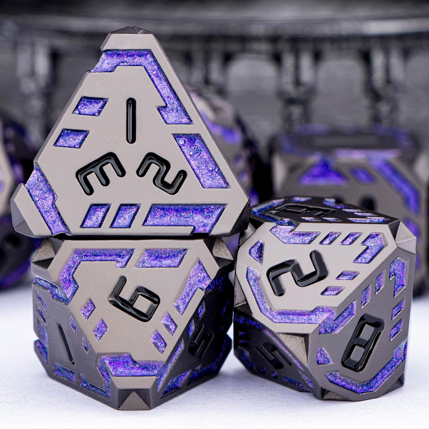 - Science Fiction Style : Designed with a future-tech theme, the dnd dice feature surface-etched stripes symbolizing pulsing energy streams of tomorrow. These dynamic lines traverse the facets, creating a unique ultra-modern, high-tech aesthetic.