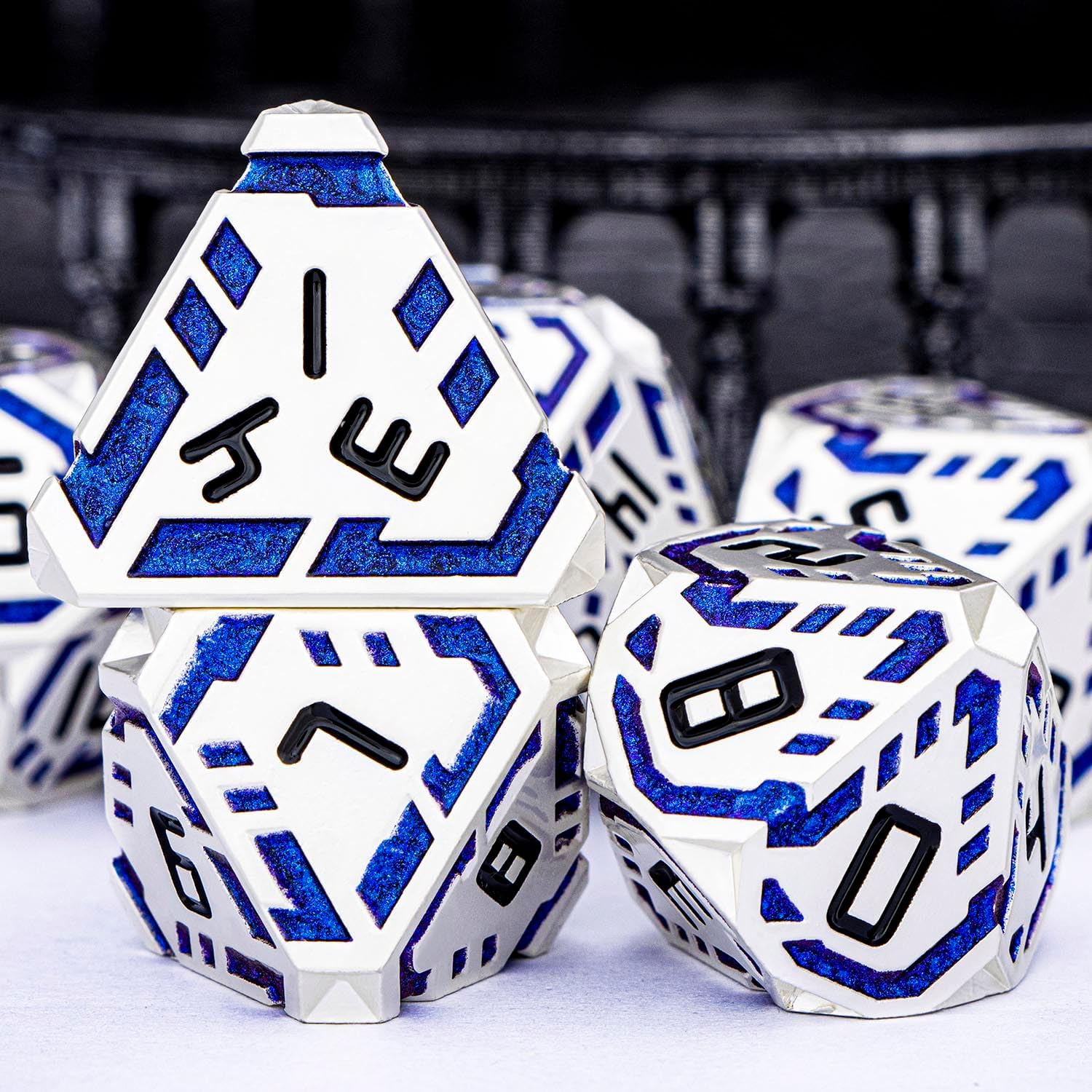 Metal DND Sci-fi Dice Set 7PCS Stripe Polyhedral Dice for Dungeons Dragons RPG Role Playing Game, Glitter D and D Dice with Gift Box D6 D8 D10 D12 D20 (Silver Blue)