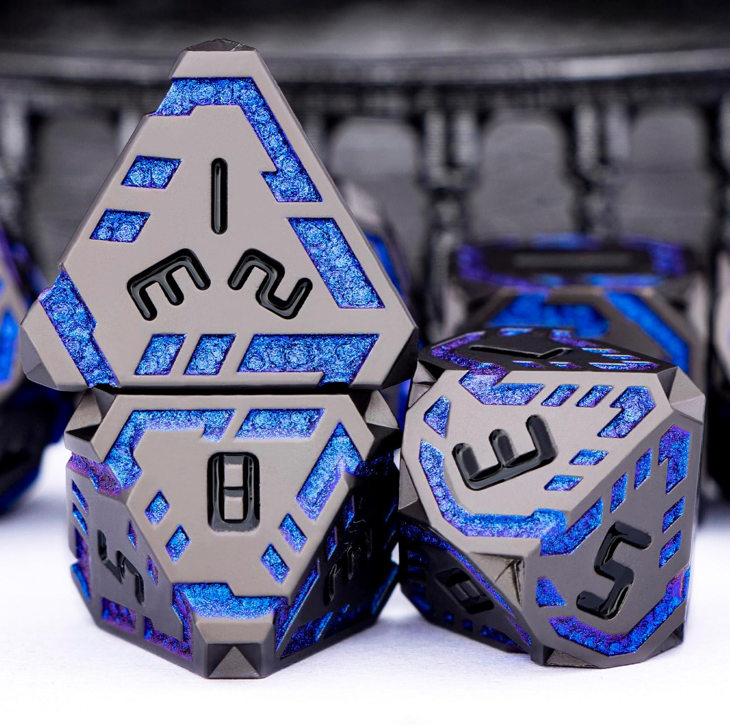 - Science Fiction Style : Designed with a future-tech theme, the dnd dice feature surface-etched stripes symbolizing pulsing energy streams of tomorrow. These dynamic lines traverse the facets, creating a unique ultra-modern, high-tech aesthetic.