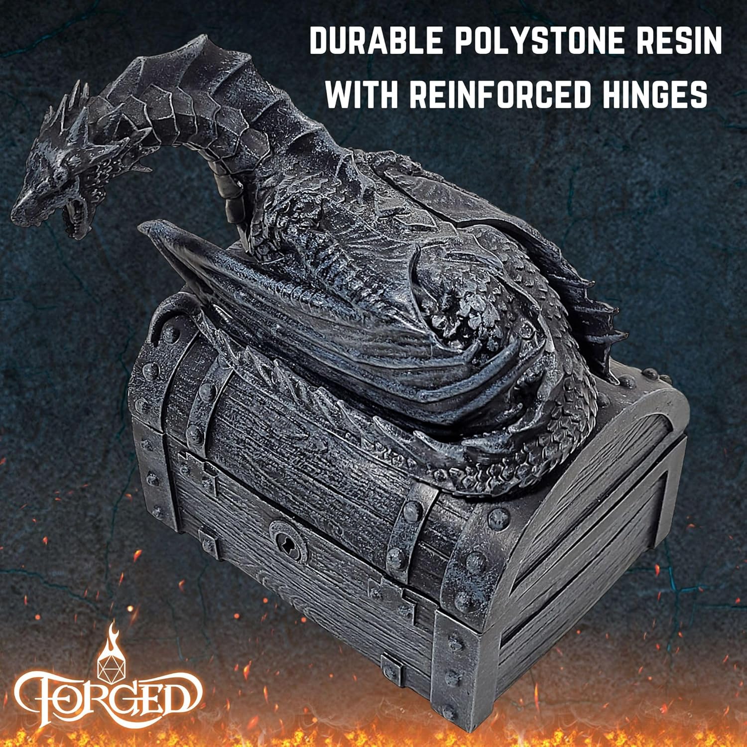 Forged Dice Co. Wyvern Dice Box with Lock and Key - Dragon Storage Chest Compatible with Dungeons and Dragons, D&D Miniatures, Dnd Accessories - Fits up to 4 Standard Polyhedral Sets - Black
