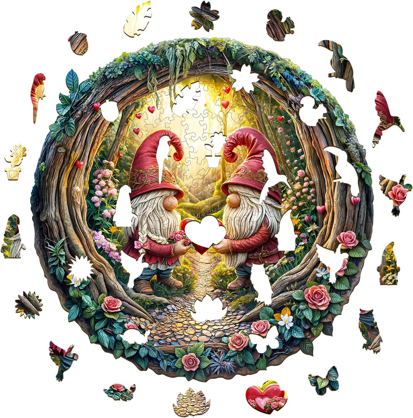 KAAYEE Wooden Puzzles for Adults, Gnome Couple Wooden Jigsaw Puzzle, 455 PCS Unique Shape Wood Puzzles Adult, 3D Visual Effect Flat Puzzle Birthday Family Games (XL-17.3 * 17.3in)