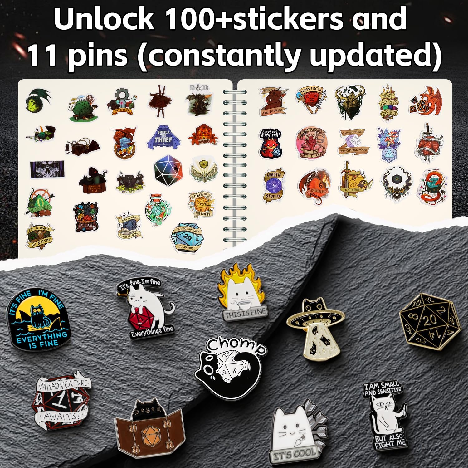 - Complete RPG Dice Set:Each pack includes a full 7 dice set, a enamel pin, and 3 DND dice stickers