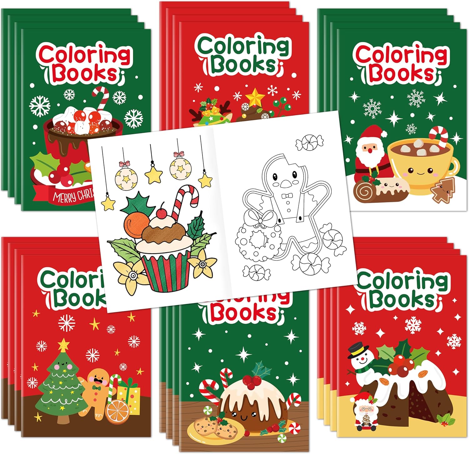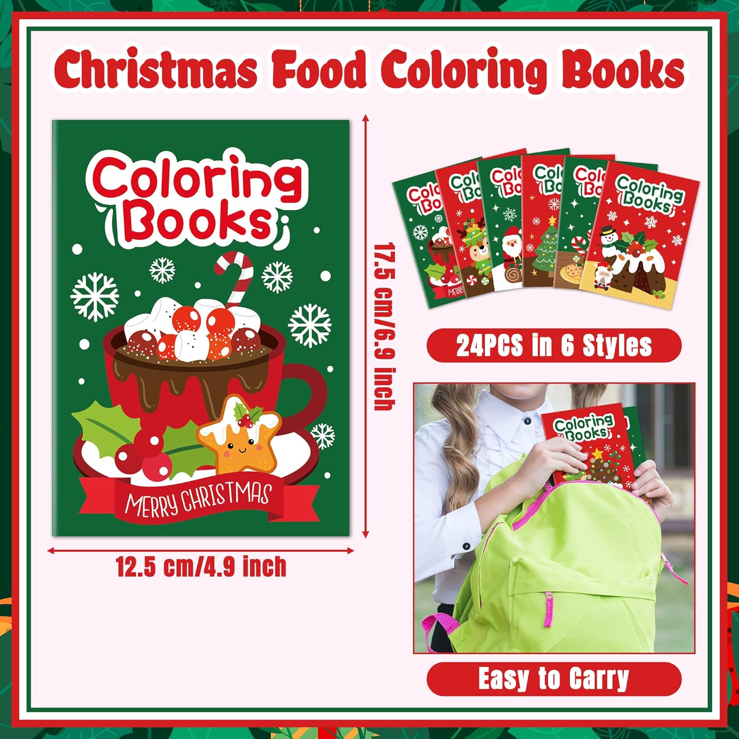 JAPBOR Christmas Food Coloring Books - 24PCS Mini Xmas Latte Color Book Bulk for Kids Party Favors, Merry Christmas Winter Small Colour Pages for School Class Drawing Painting Games