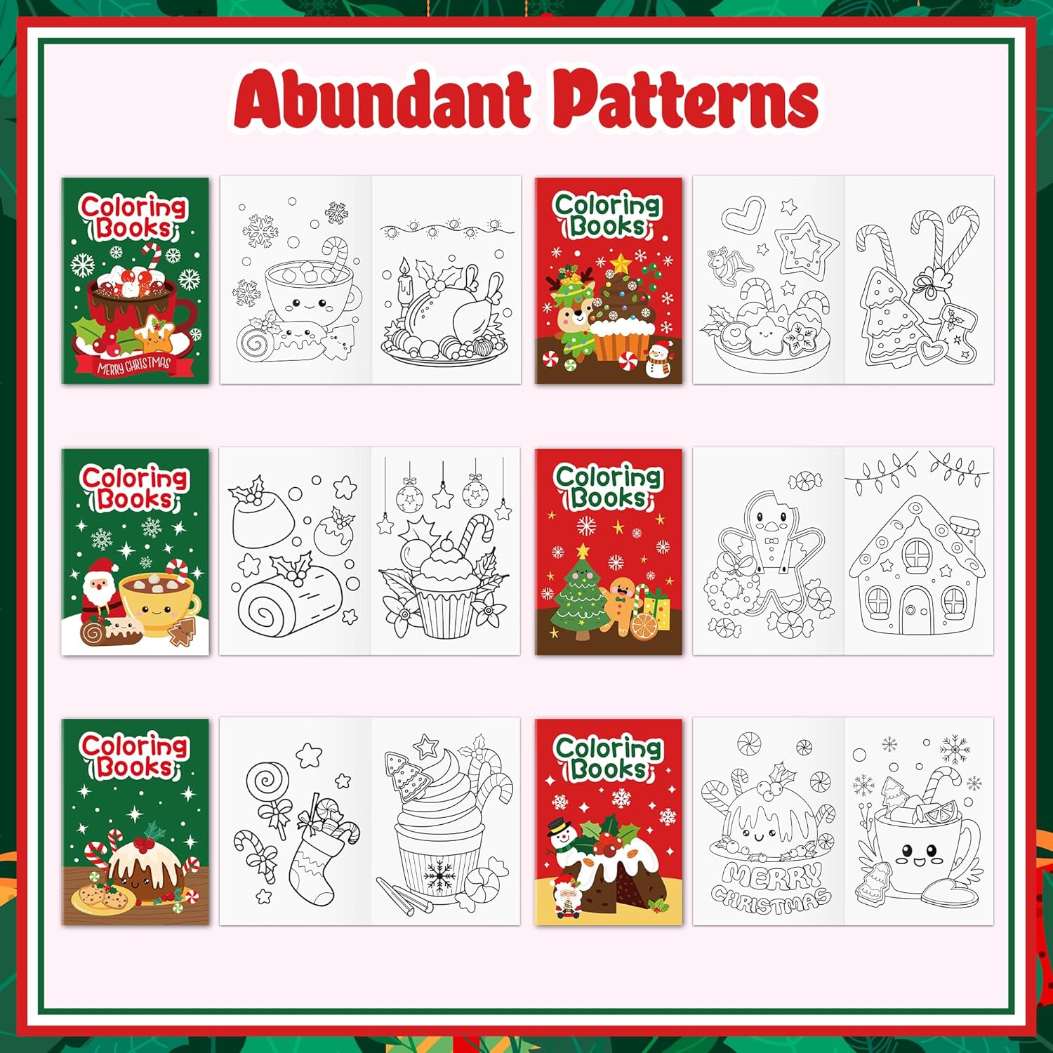 - Surprising Quantity - You will receive 24 Christmas food coloring books with 6 different covers. The delicate patterns are drawn with black lines and you can color them. Plenty of quantity and variety to meet your coloring needs and give you enough space to play.
