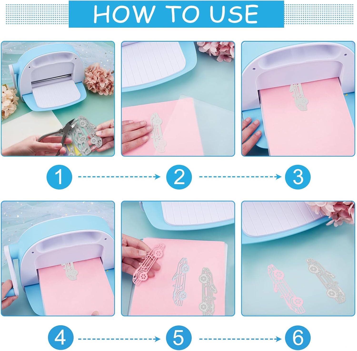 - How to Use: Put the dies on the colored paper or thin cardpaper to cut, put it between the cutting dies plates, and put them in your cutting machine (not included), cut it back and forth repeatly, finally you can get your pretty crafts.